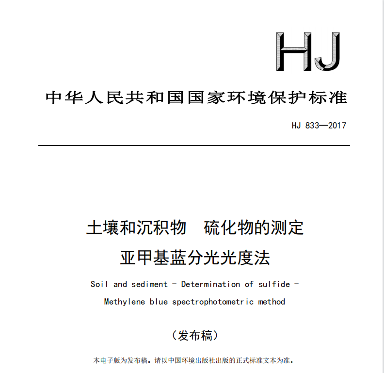 HJ 833—2017土壤和沉積物 硫化物的測定 亞甲基藍(lán)分光光度法 HJ 833—2017土壤和沉積物 硫化物的測定 亞甲基藍(lán)分光光度法 更新日期:2023-01-03 下載包(1)