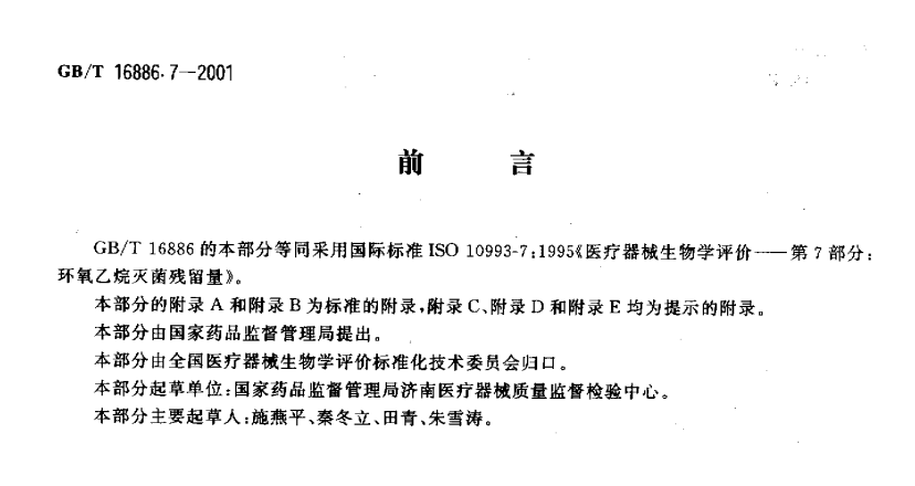 GB-T_168867-2001_醫(yī)療器械生物學評價_第7部分環(huán)氧乙烷滅菌殘留量 本標準規(guī)定了經(jīng)環(huán)氧乙烷滅菌的醫(yī)療器械單位產(chǎn)品上環(huán)氧乙烷(EO)和2-氯乙醇(ECH)殘留量的允許極限... 更新日期:2020-05-09 下載包(1)