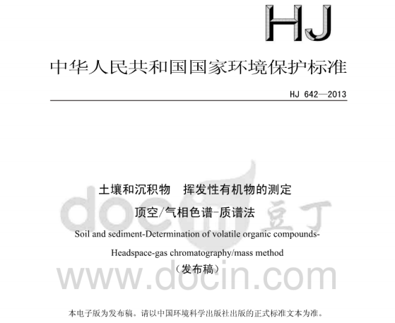 HJ642-2013土壤和沉積物揮發(fā)性有機物的測定頂空氣相色譜—質(zhì)譜法 適用范圍試驗中所使用的內(nèi)標、替代物和標準溶液為易揮發(fā)的有毒化合物,其溶液配制過程應在通風廚中進行操作... 更新日期:2020-05-09 下載包(1)