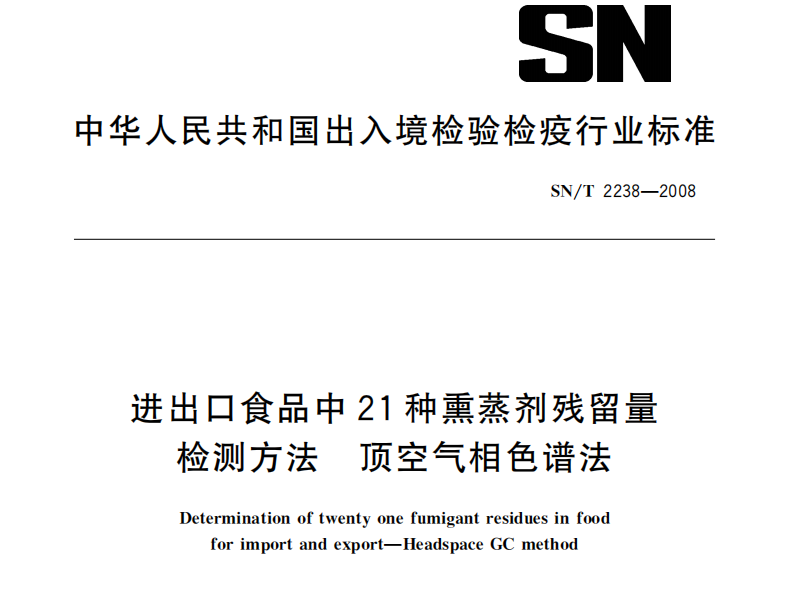 SNT 2238-2008 進出口食品中21種熏蒸劑殘留量檢測方法 頂空氣相色譜法 SNT 2238-2008 進出口食品中21種熏蒸劑殘留量檢測方法 頂空氣相色譜法本標準于2017-... 更新日期:2020-05-09 下載包(1)