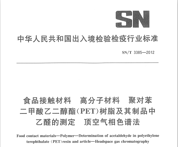 SNT 3385-2012 食品接觸材料 高分子材料 聚對苯二甲酸乙二醇酯(PET)樹脂及其制品中乙醛的測定 頂空氣相色譜法 適用范圍本標準規(guī)定了聚對苯二甲酸乙二醇酯(PET)樹脂及其制品中乙醛的頂空氣相色譜測定方法。本標準適... 更新日期:2020-05-09 下載包(1)